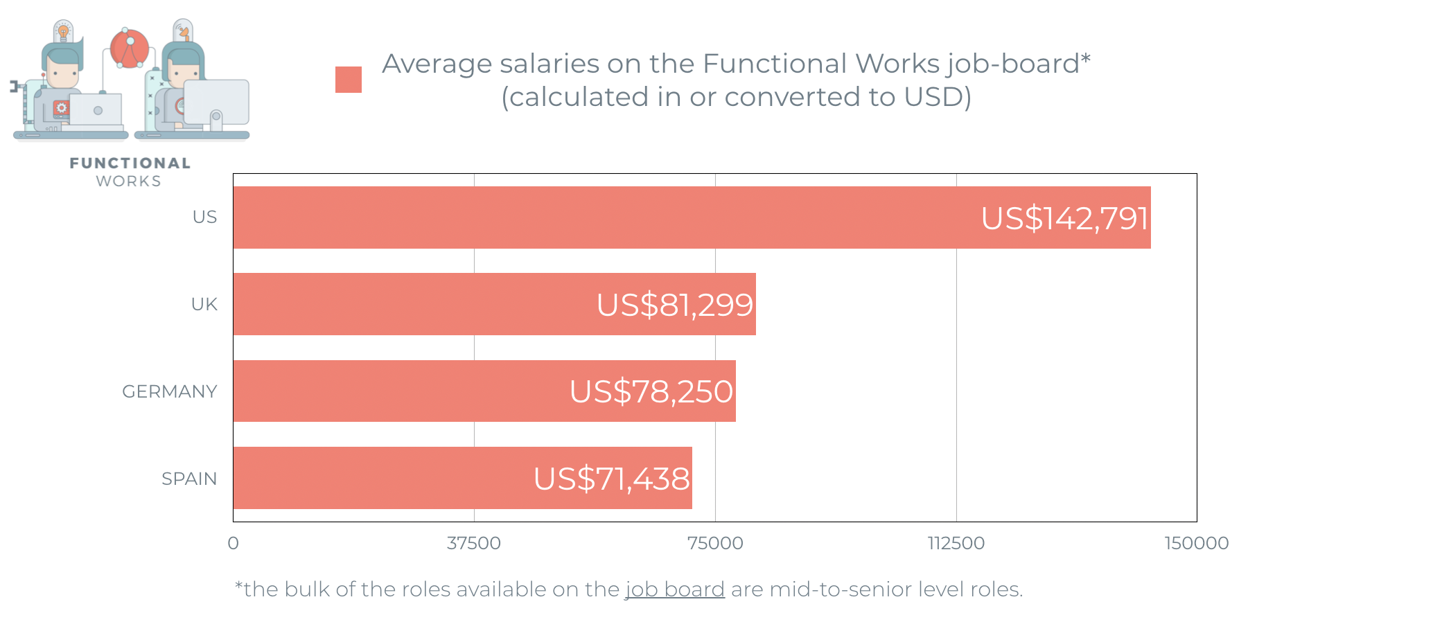 There are hundreds of Functional Programming jobs live on our platform and we're actually hiring for positions all over the world. Users can see and search jobs by salary, languages and visa requirements. You can sign up here
